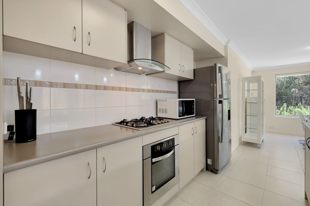 • Gas cooktop, ample bench space, and overhead cupboards