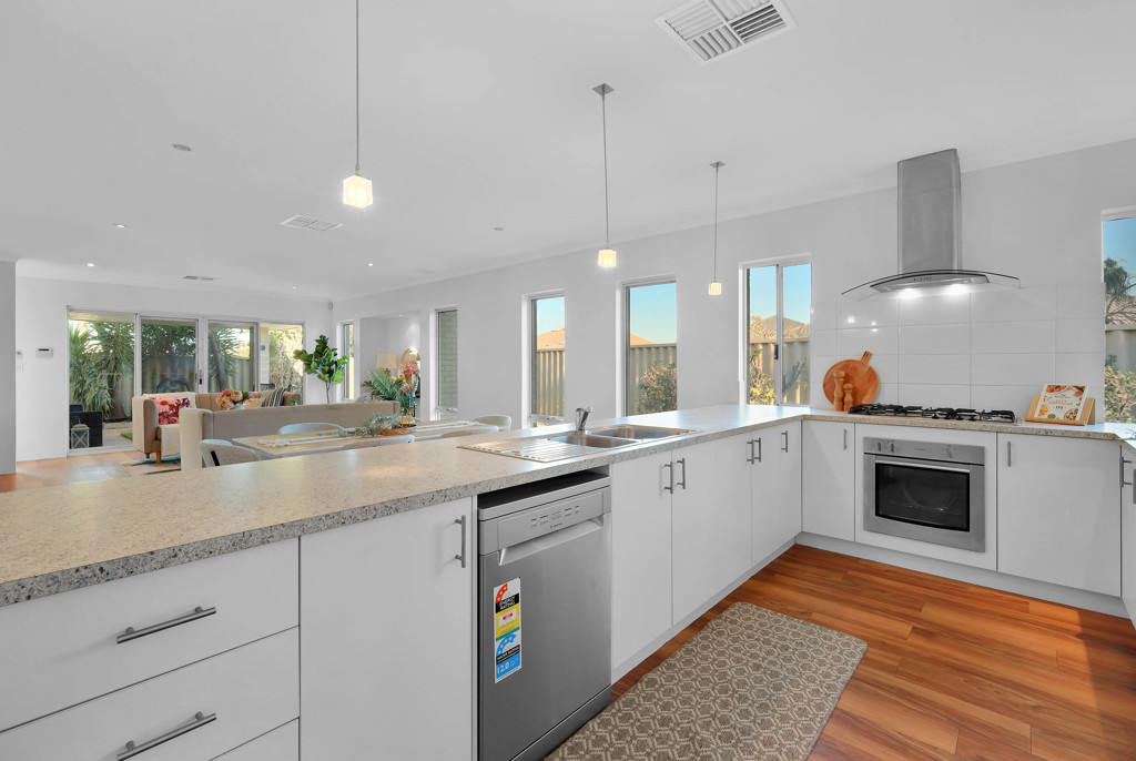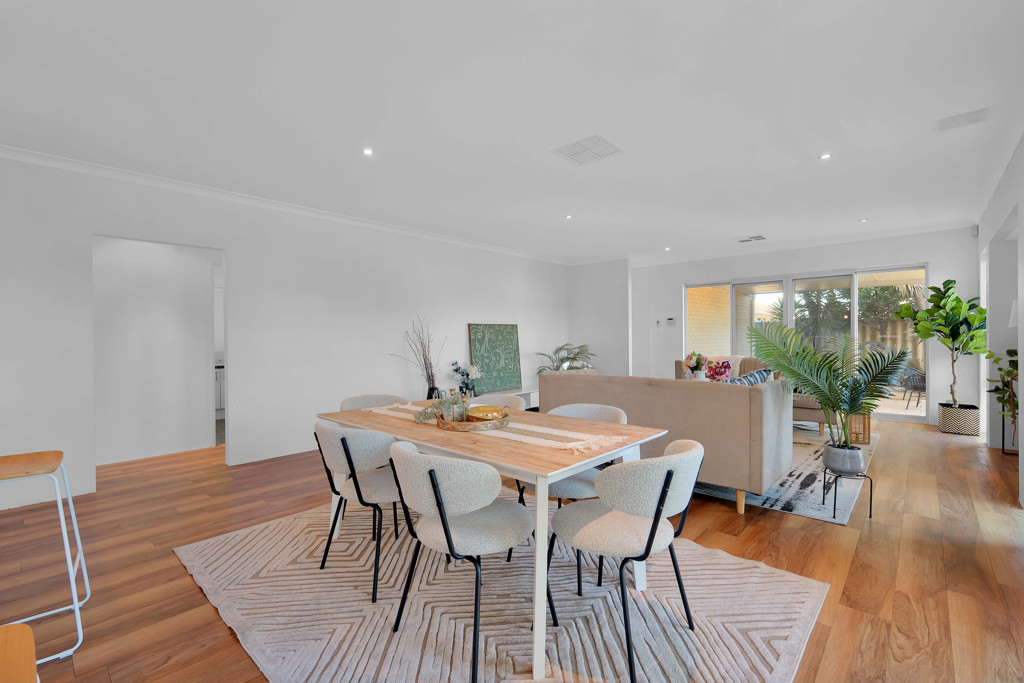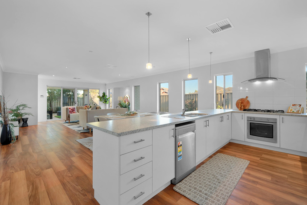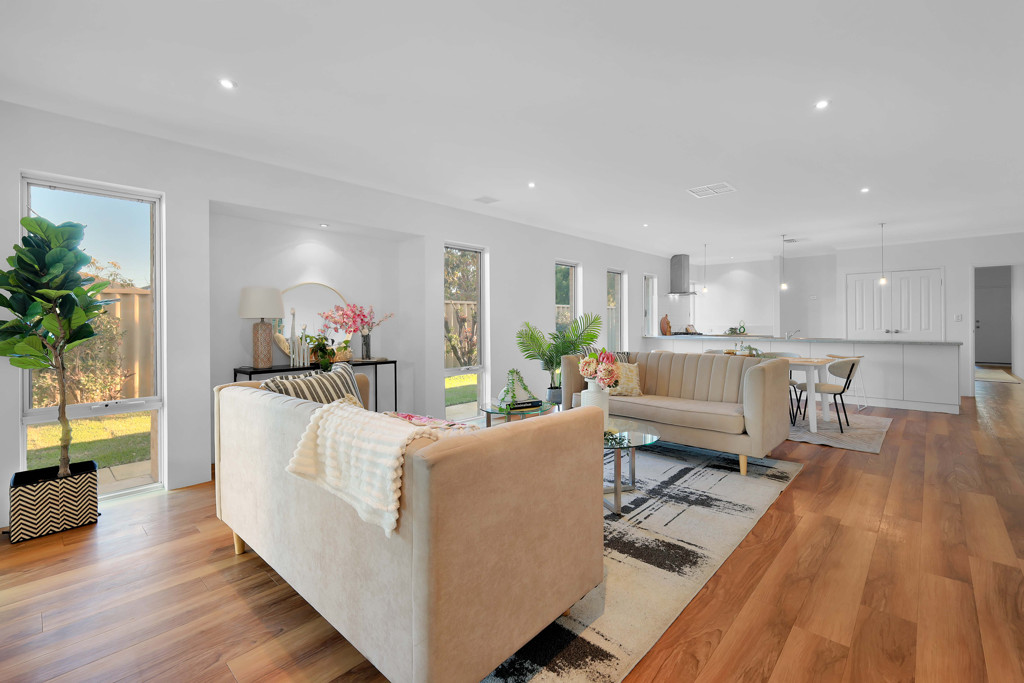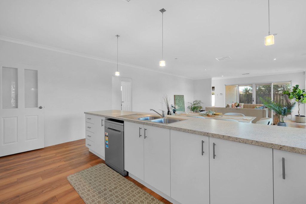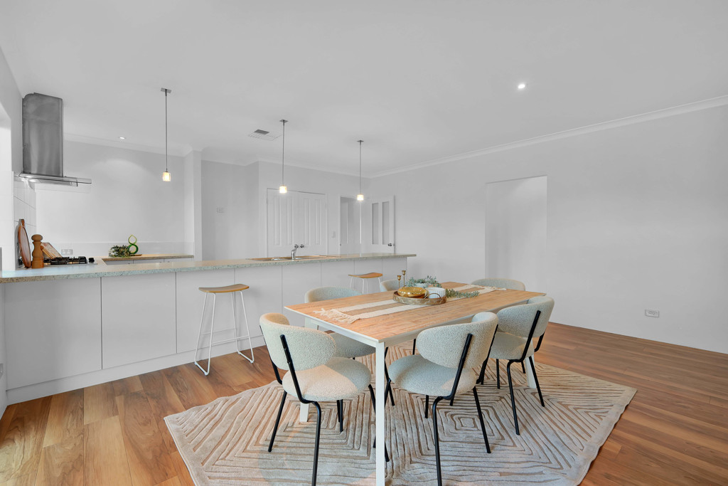 At the centre of the home is a spacious open-plan living and dining area with excellent natural light and high ceilings that enhance the sense of openness. The layout flows seamlessly into the outdoor alfresco, making it perfect for both relaxation and entertaining.