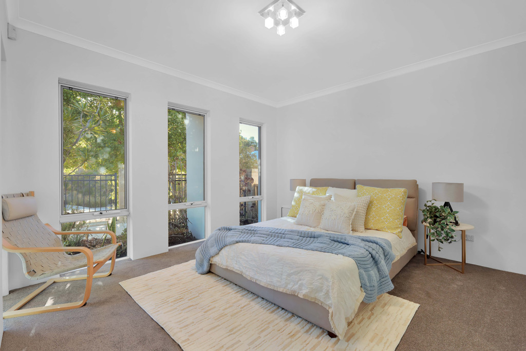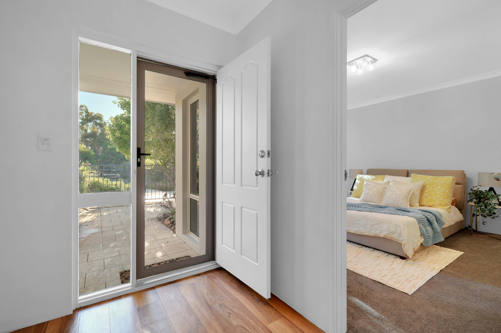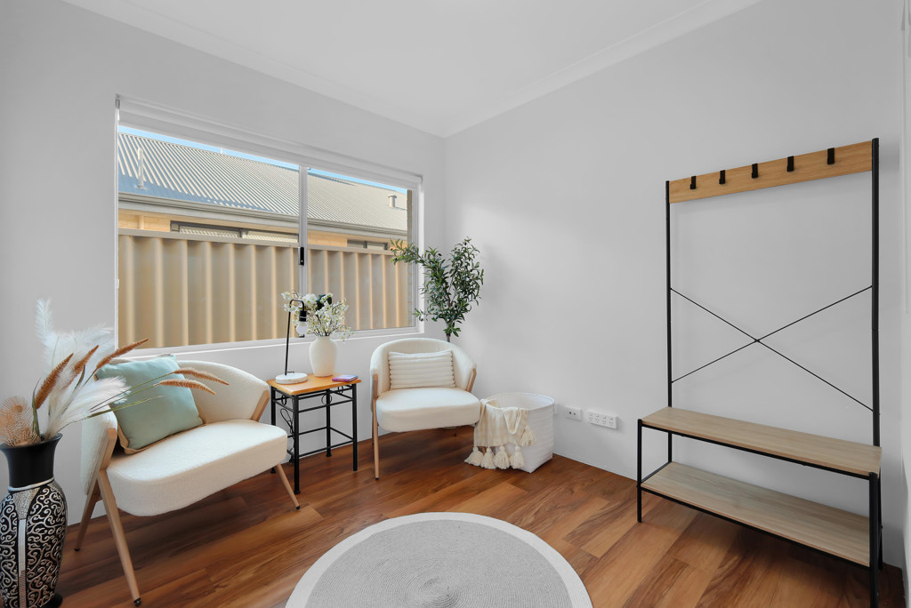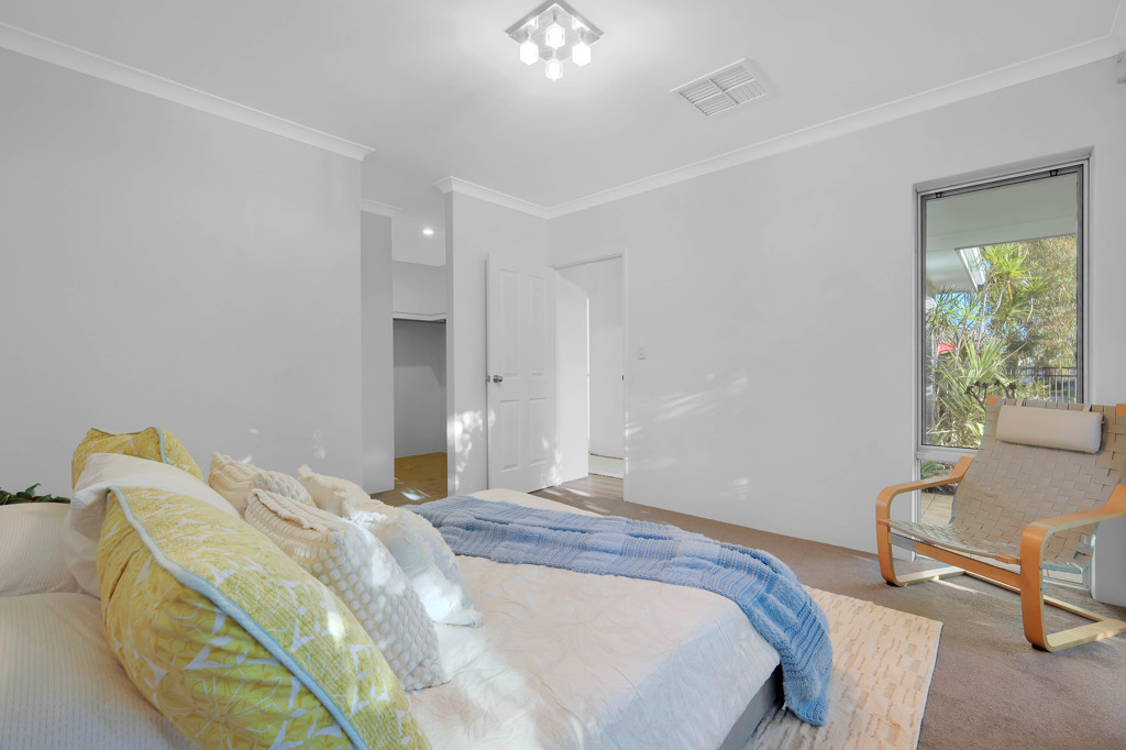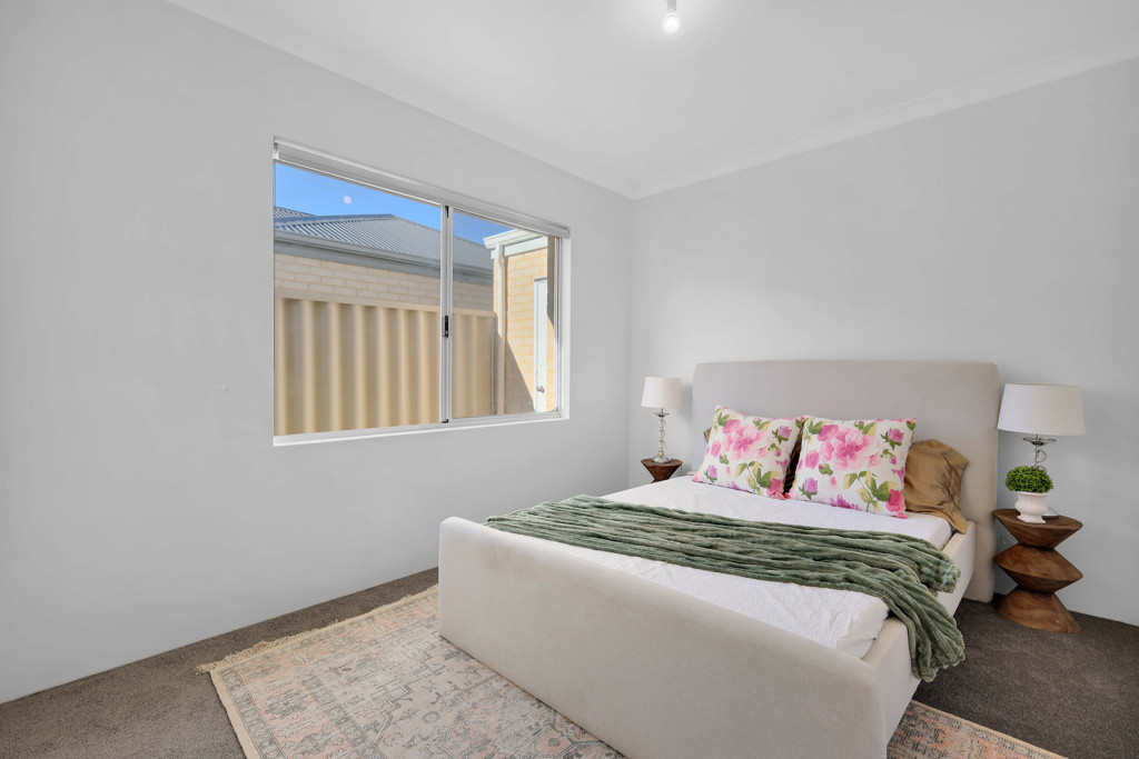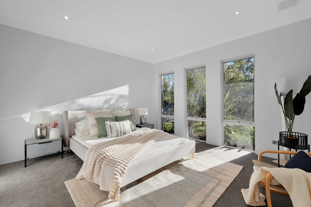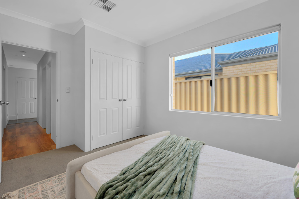 All bedrooms provide excellent space and versatility, making them ideal for families, guests, or a home office. The master bedroom features a walk-in robe and a private en-suite, while the additional rooms are well-sized and furnished with soft, natural tones and plush carpets, creating a warm and welcoming feel.